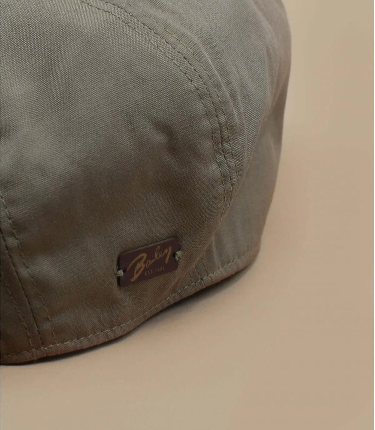 Casquette plate Bailey formée de 5 pans. Couleur olive, avec logo cuir Bailey sur le cÎté. Casquette 100% Imperméable.