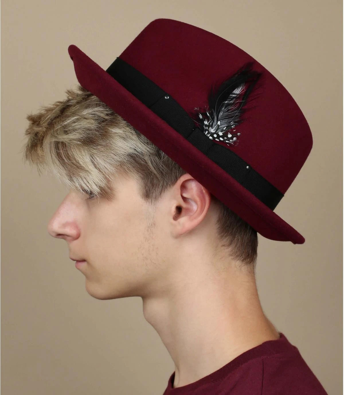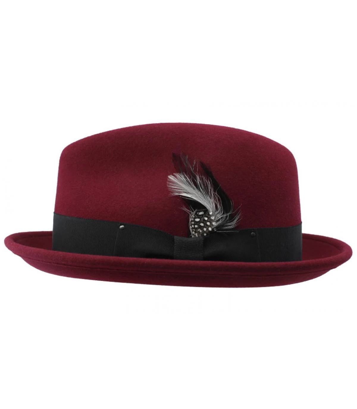 Affichez lâallure des stars dâHollywood dans les annĂ©es 20, avec ce splendide trilby en feutre de laine bordeaux que nous propose la marque amĂ©ricaine Bailey. RĂ©alisĂ© en feutre de laine dĂ©perlant LiteFeltÂź, il conserve durablement sa forme iconique. Il est dĂ©corĂ© dâun ruban en gros grain japonais et dâune plume amovible.