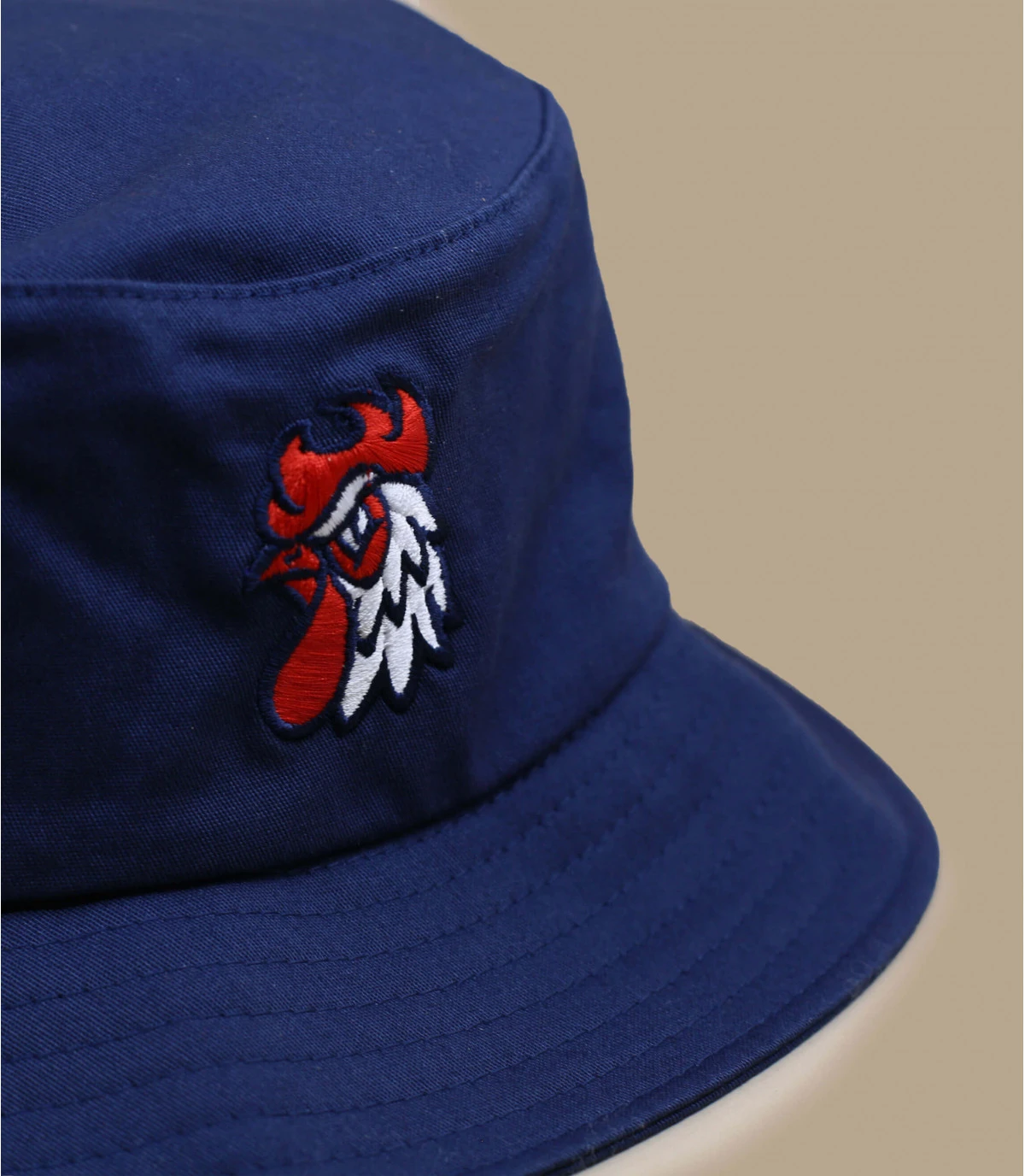 Bob bleu marine brodé devant d’un logo de coq à l’air peu commode… Le modèle parfait pour afficher votre caractère, à moins que ce ne soit votre sens de l’humour… Une exclusivité au charme frenchy, proposée par Headict.