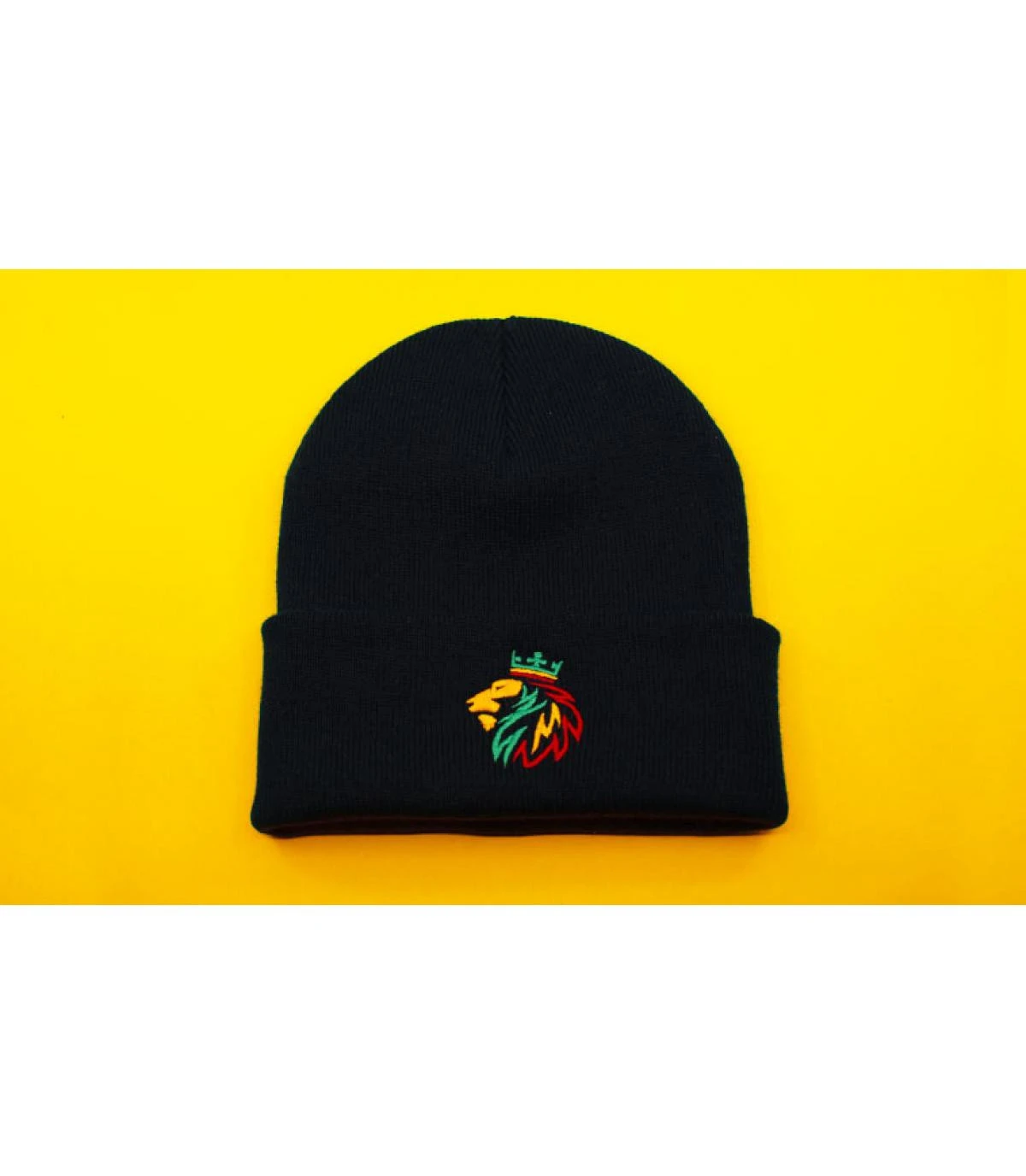 Bonnet noir, brodé sur le revers d’un superbe Lion de Judas couronné, dans les couleurs du mouvement rastafari. La forme standard de ce modèle discret emboite bien la tête.