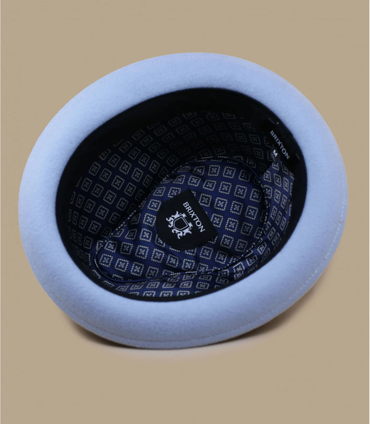 Faites-vous un look totalement rétro avec ce chapeau pork pie en feutre de laine d’une belle couleur gris clair. Il est souple et est décoré d’un gros ruban et d’une plume. La marque est visible sur l’épingle du nœud.