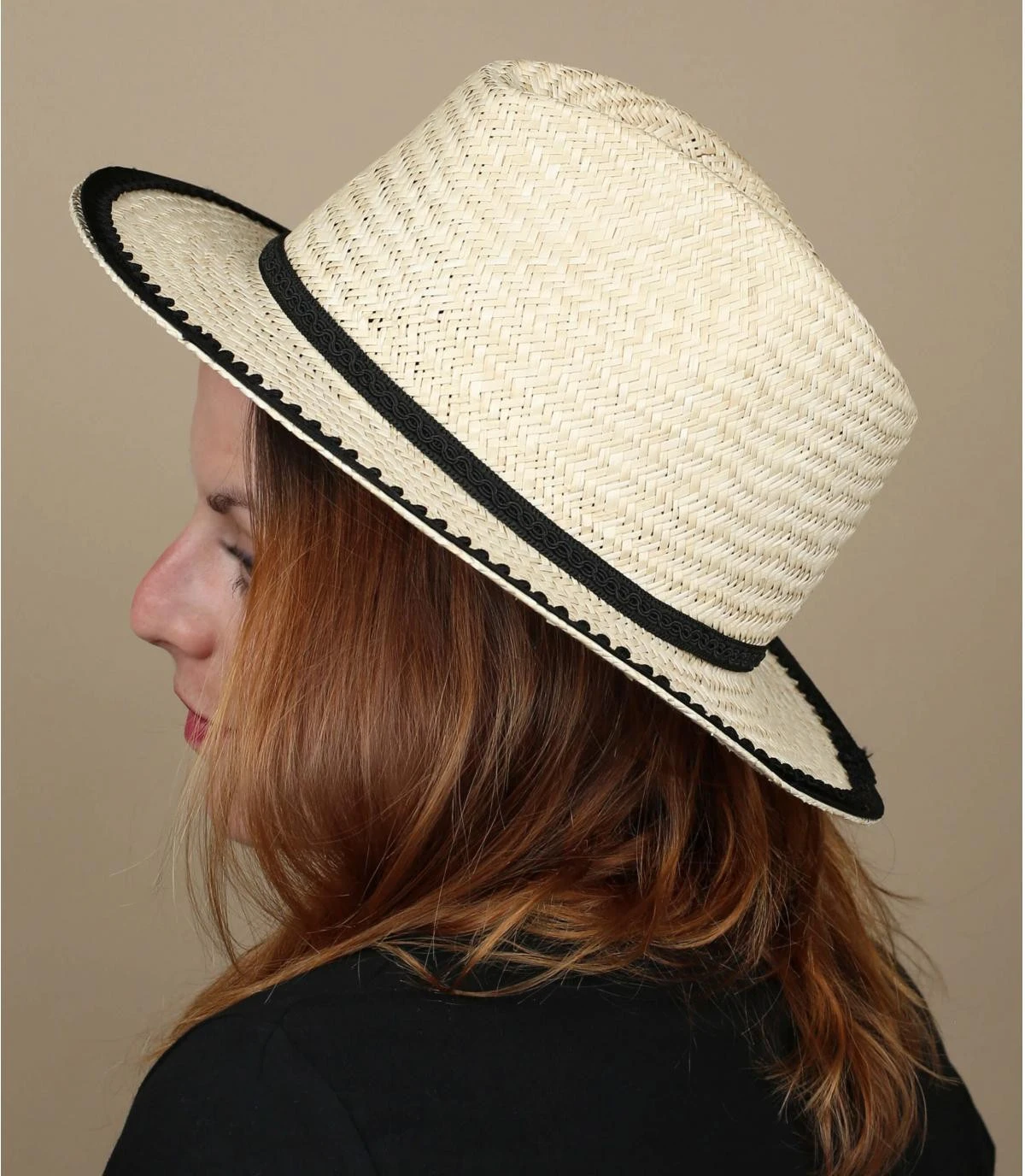 Avec son liseré noir sur le bord et son ruban du même ton, ce chapeau de paille d’un beige clair très lumineux à une élégance intemporelle qui s’assortira avec tous types de tenue. Emportez-le partout avec vous cet été !