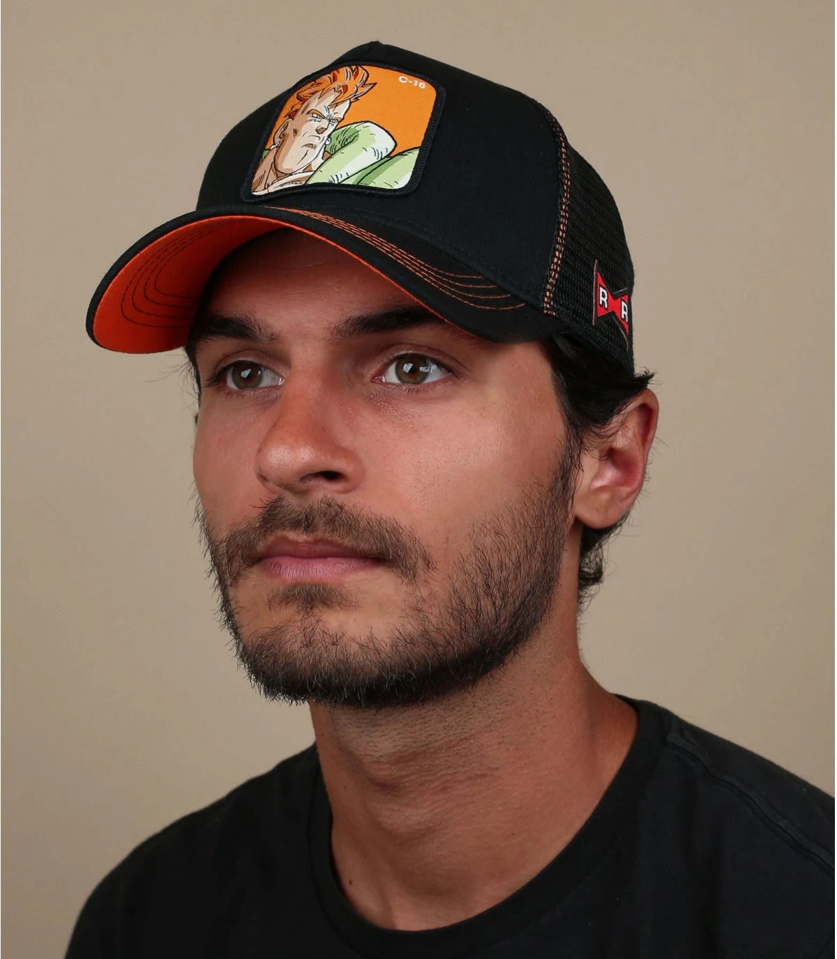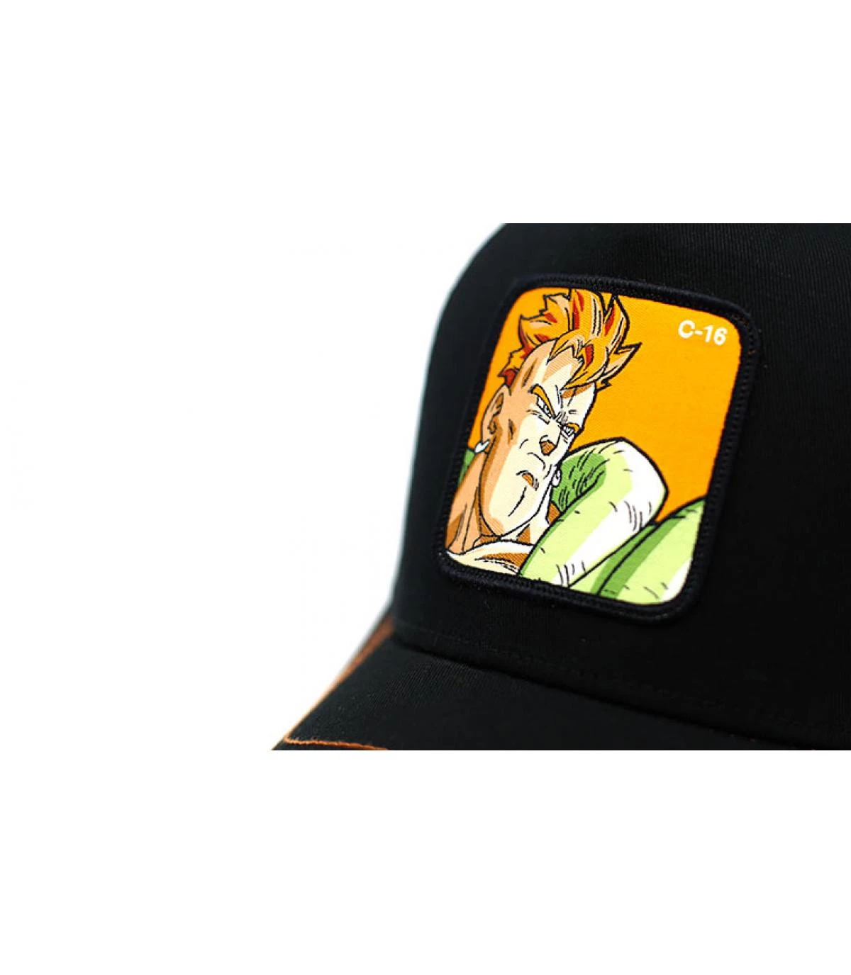 Le portrait de l’androïde C16 apparait sur le grand patch carré qui décore cette casquette trucker, il sera reconnu par les fans de la série animée Dragon Ball Z. Ce modèle léger et respirant est doté de détails additionnels, comme une broderie sur le côté et des coutures contrastantes.