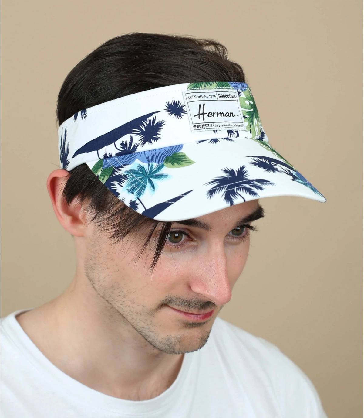 Restez à l’ombre en portant cette visière blanche stylée qui vous protège du soleil ! Son motif de palmiers exotique est frais et vous fera voyager instantanément vers un pays chaud. 100 % coton, elle est confortable à porter et légère.
