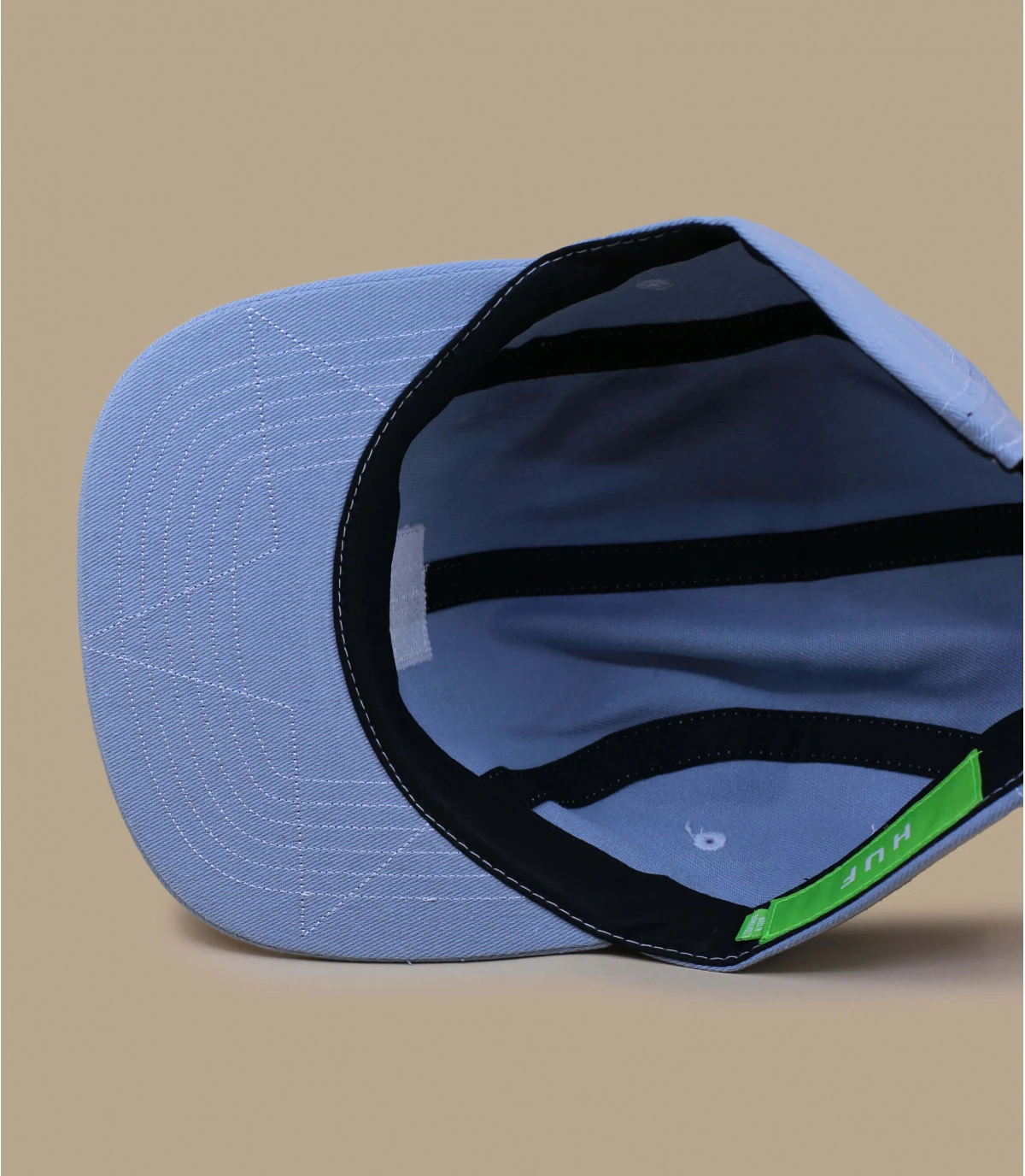 De couleur bleue délavé et 100 % coton, cette casquette porte un patch à l’avant avec un logo en triangle d’inspiration vintage. C’est une 5 panel à visière plate très décontractée. Elle est réglable avec une sangle en plastique à l’arrière.