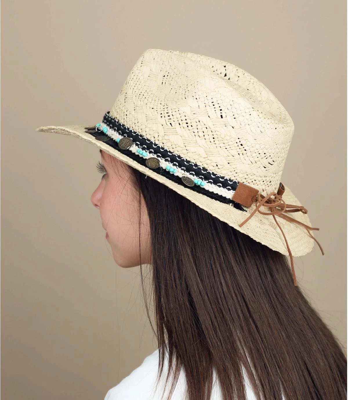 LâĂ©tĂ© sera hippie chic, avec ce ravissant chapeau de paille Ă bord lĂ©gĂšrement relevĂ© que nous propose la marque spĂ©cialisĂ©e M by FlĂ©chet. ConfectionnĂ© en Italie, il est complĂ©tĂ© dâun original ruban nouĂ© dans le dos dĂ©corĂ© de perles.