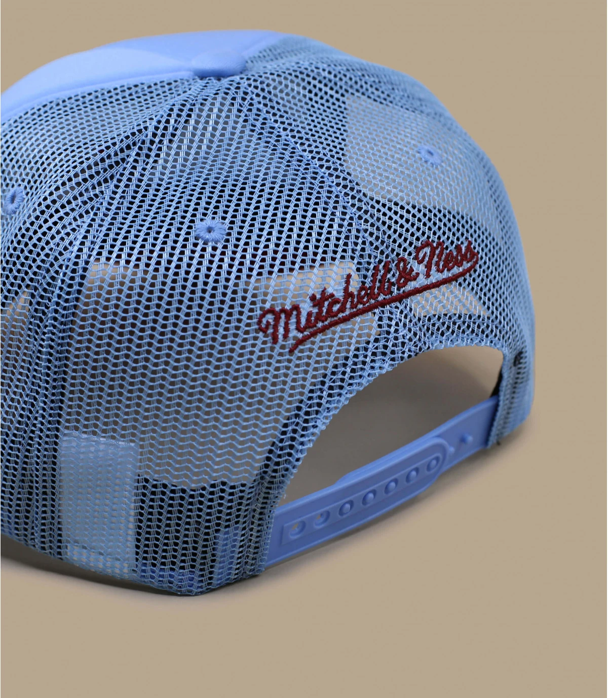 Soyez original avec cette inattendue casquette trucker bleu clair avec le logo des Chicago Bulls. La tête de taureau rouge est la mascotte de l’équipe. Les Chicago Bulls sont la franchise historique de NBA qui cumule tous les records.