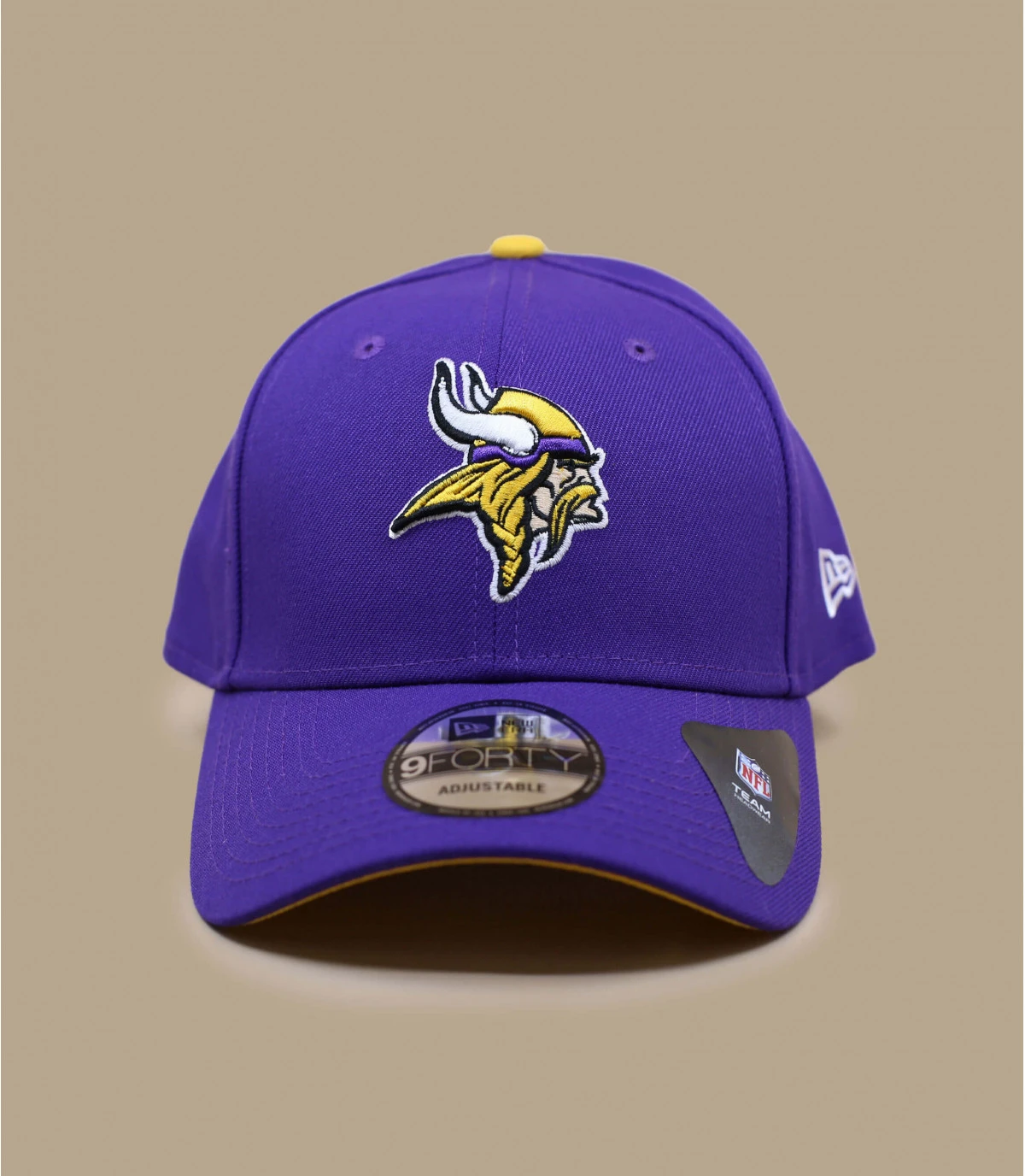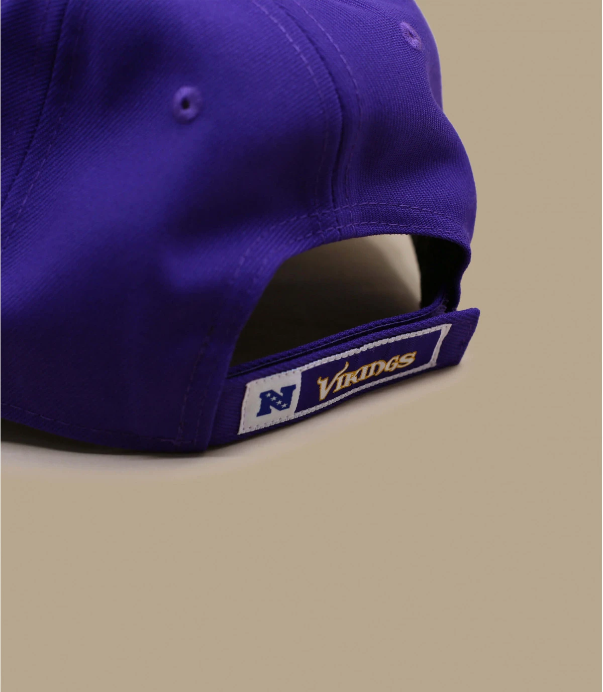 Le logo de l’équipe de football américain des Vikings de Minneapolis est superbement mis en valeur sur cette casquette bleue. Le dessous jaune de la visière courbée montre le savoir-faire de la marque américaine New Era.