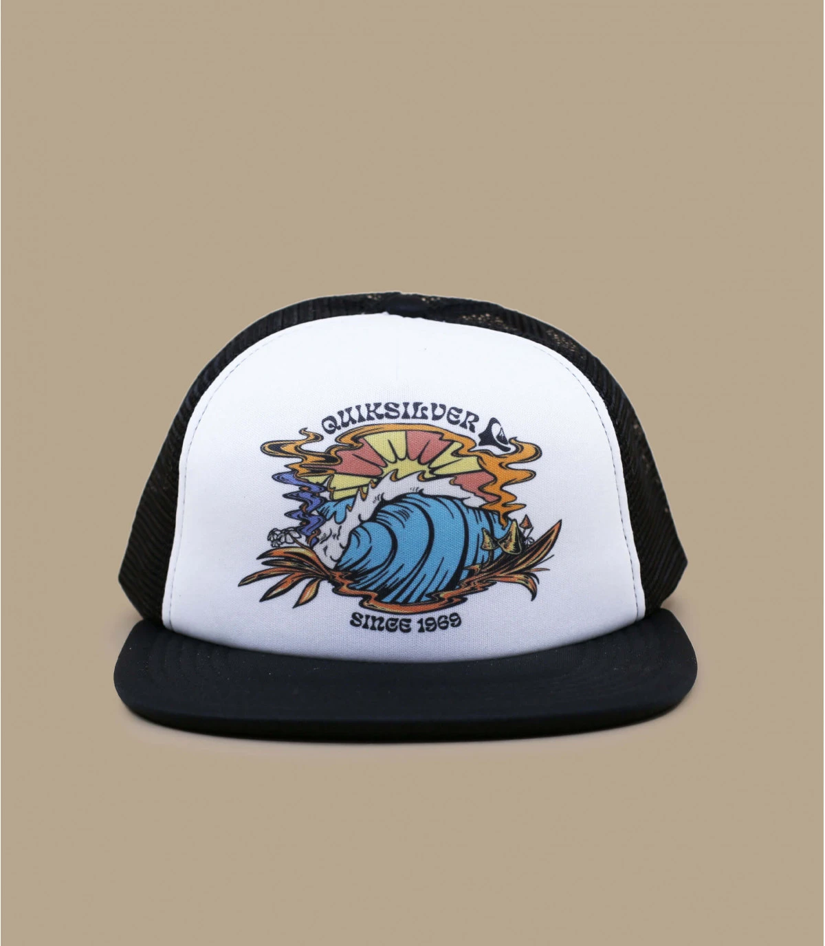 Cette jolie casquette pour enfant aura beaucoup de succès ! Le panneau est en mousse à l’avant et arbore un imprimé rafraîchissant : une vague déchaînée avec le slogan “Quiksilver Simple Pleasures”. Le filet arrière en mesh est noir.