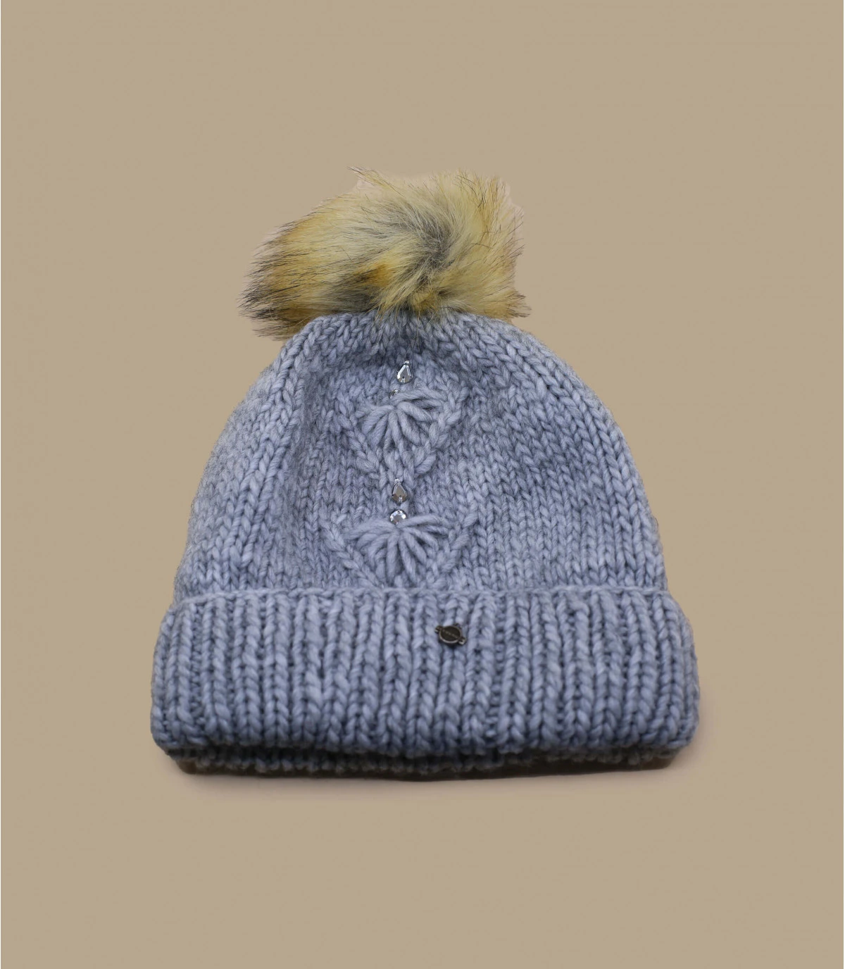 Seeberger Bonnet Pompon Strass Gris