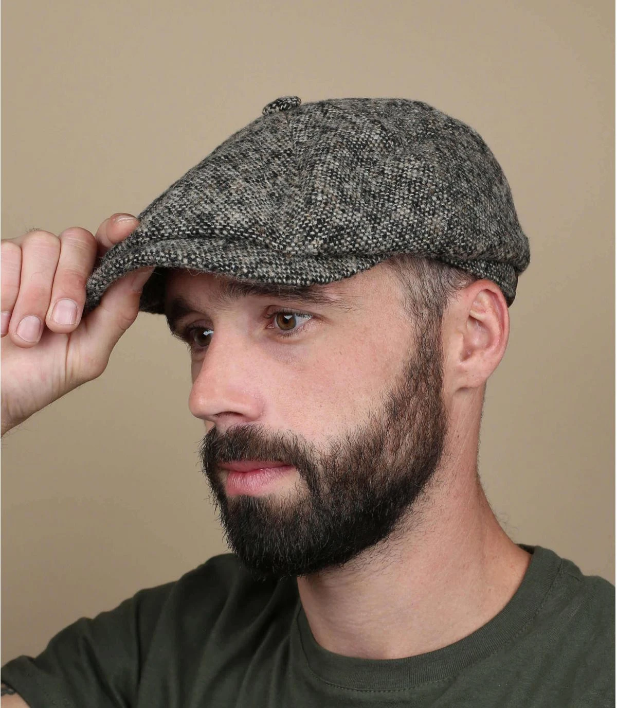 BĂ©ret gavroche en laine de couleur marron clair avec visiĂšre. Logo Stetson aposĂ© Ă l’arriĂšre. Doublure Ă l’intĂ©rieur.