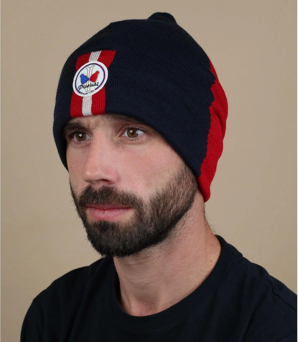 Cet amusant bonnet long affiche un effet bicolore avec une moitié bleu marine et l’autre rouge. Sa forme spécifique permet de le porter avec un style décontracté au charme rétro. Il est intégralement doublé en polaire chaude.